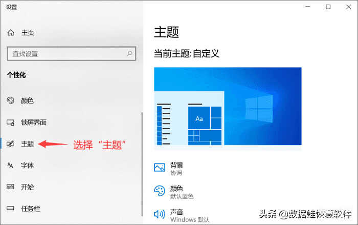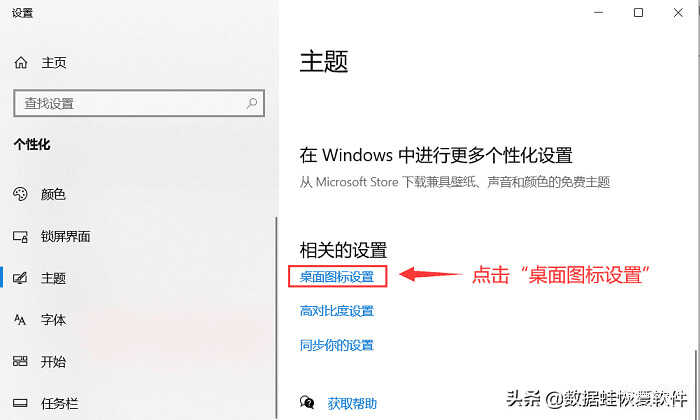 第2步:在“个性化”中进入“主题”的设置,然后在里面找到并进入“桌面图标设置”;