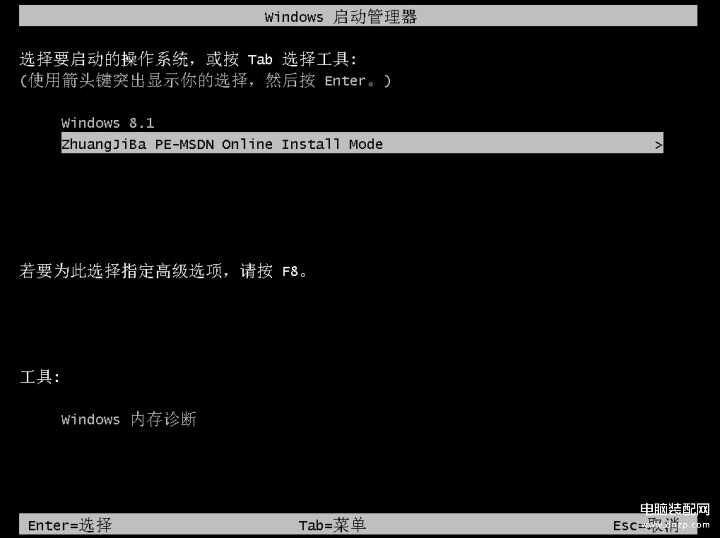 4、电脑重启之后,我们在菜单上选择pe系统,然后点击回车进入到pe系统。