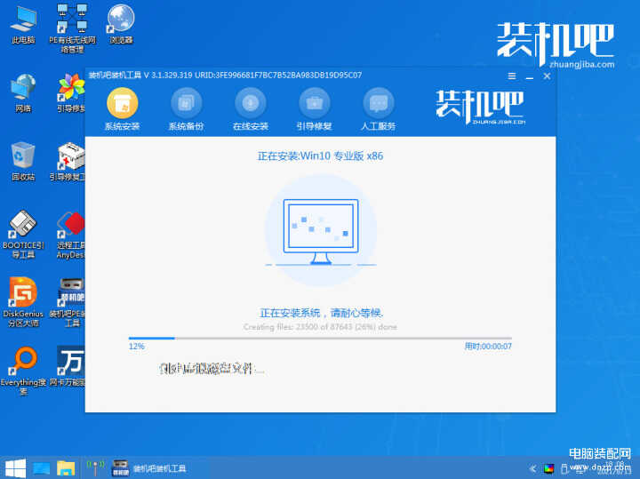 5、接下来我们会看到进入的pe系统,在pe系统内我们等待win10系统自动安装完就可以了。