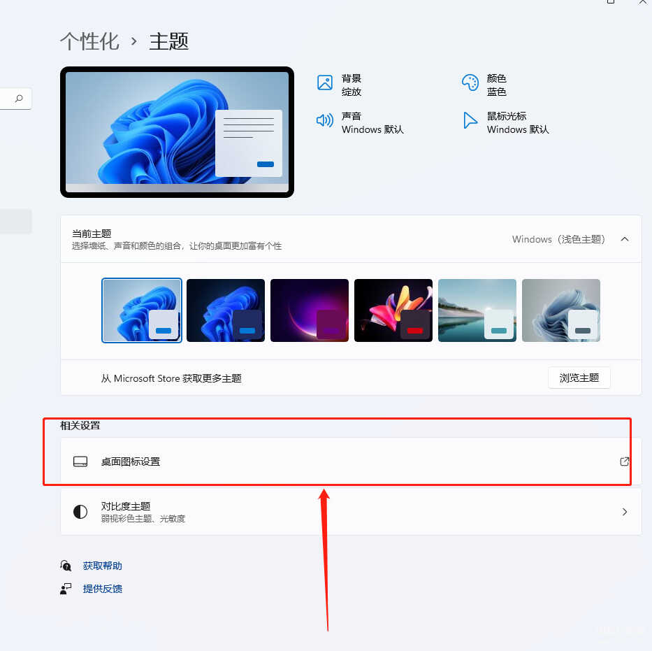 进入“个性化”页面,点击“主题”,