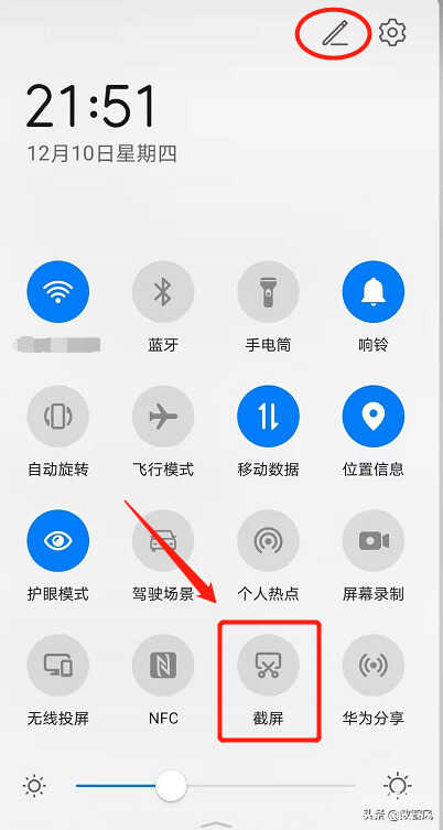 用手指按住屏幕顶端的状态栏向下滑动,拉出通知面板。点击通知面板的截屏开关,系统会自动截取完整屏幕。