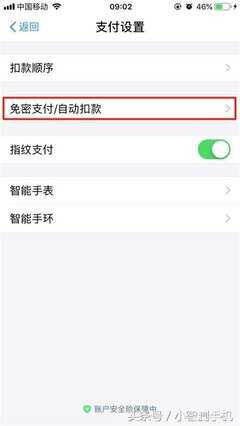 点击进入【免密支付/自动扣款】选项。