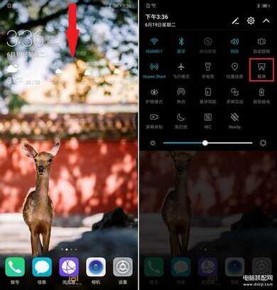 从状态栏处往下滑动,点击下拉菜单里的截屏快捷键即可截屏。这种相信大家都知道,就不多说了。