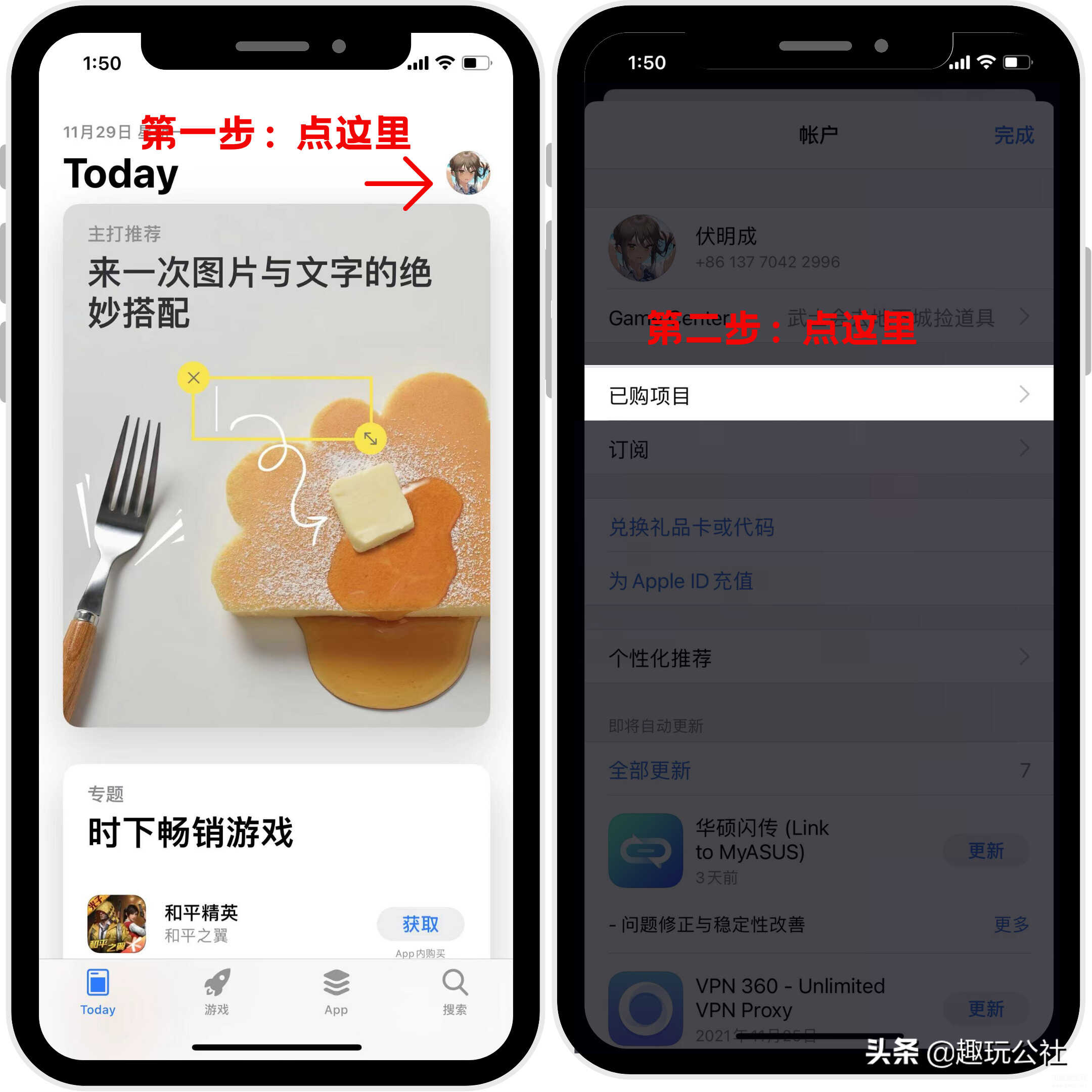 进入 App Store 之后,按右上角的 Apple ID 账户图标,就能看到已购项目。