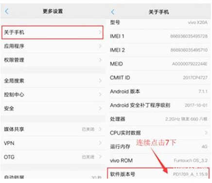 1、依次打开手机【设置】——【更多设置】——找到【软件版本号】,连续点击七下,如下图: