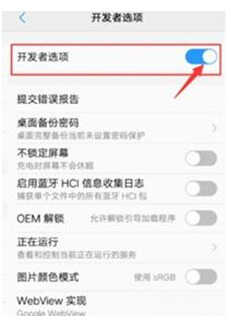 2、点击返回键返回到“更多设置”界面,然后选择“开发者选项”,开启“开发者选项”开关,开启后状态栏会变为橙色。