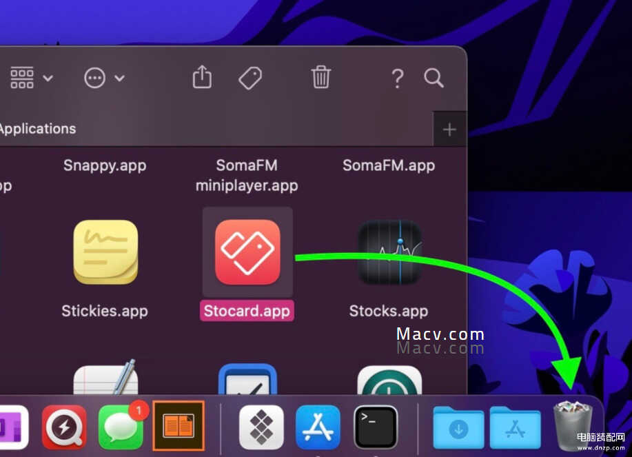 打开应用程序文件夹并将要卸载的应用程序拖到废纸篓中。