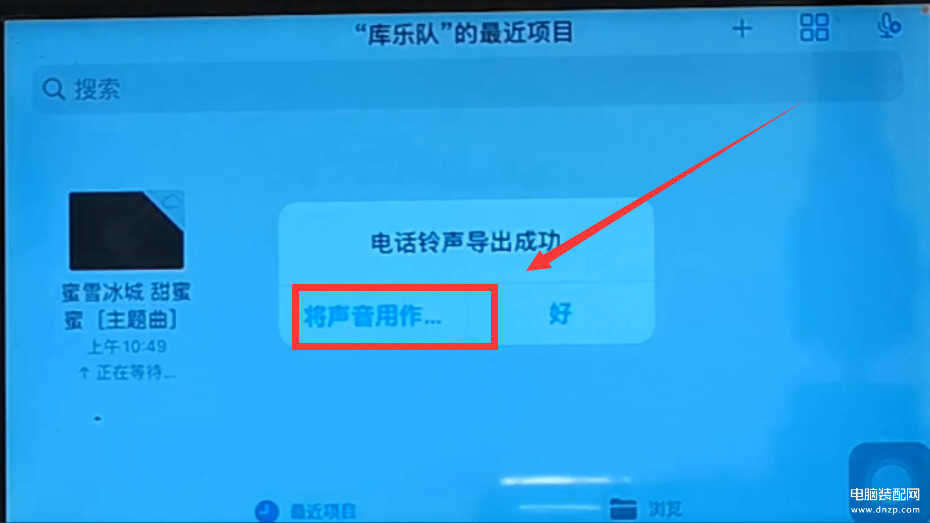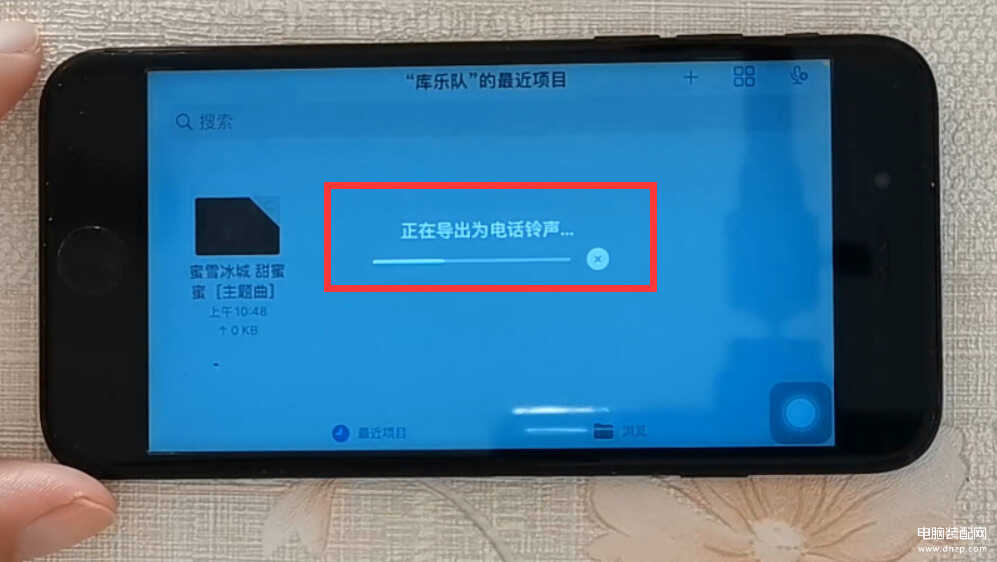 在这个界面,我们点击右上角的“导出”按钮,这个时候,手机就开始把这个歌曲导出为电话铃声(如下图)。