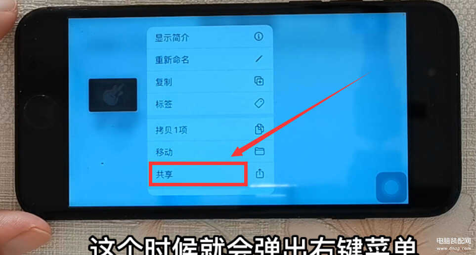 在库乐队界面里,我们就可以看到我们刚才在酷狗铃声里添加的歌曲《蜜雪冰城甜蜜蜜》(如上图),用手指长按它2秒钟,就会弹出下拉菜单(如下图)。