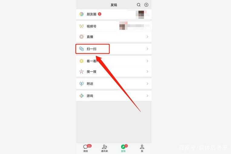 保存好这张照片以后,用户打开自己的而微信,点击微信界面下方的发现,然后找到“扫一扫”功能,并点击。如下图: