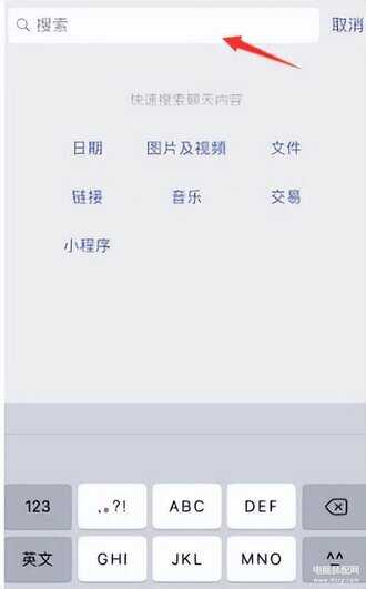 4. 根据下图箭头所指,在搜索框中输入聊天记录关键字。