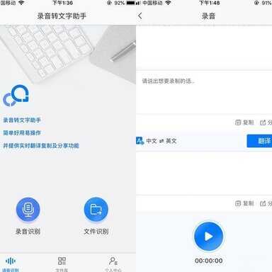 录音转文字助手,支持边录音边转换和上传音频文件转换,还可以直接将识别好的文字内容一键翻译为英文哦。