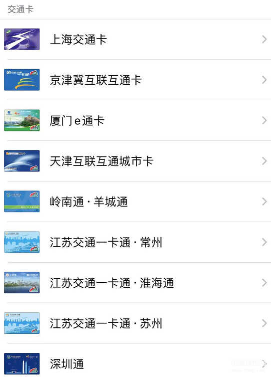 4、卡片类型在“交通卡”选项中选择一张不常用的交通卡,点击进入下一步。