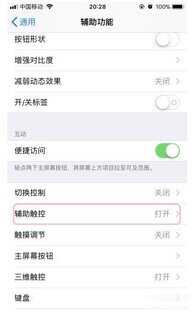 4.在【辅助功能】页面中向下拉,找到【辅助触控】功能,如果你的这项功能没有打开的话,把它打开然后再点进去。