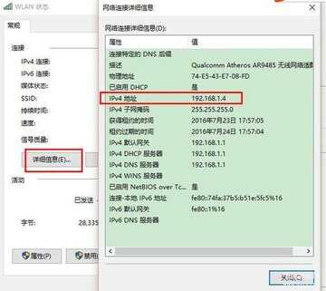 3、点击状态栏中的“详细信息”,可以看到IP地址。
