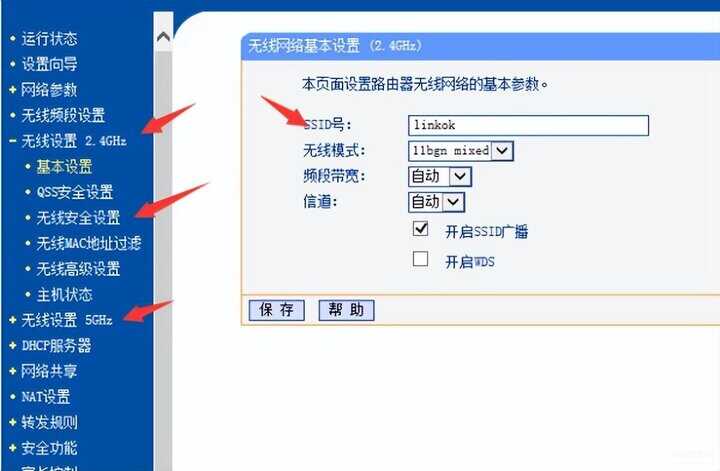 (2)“ SSID号”:它是无线信号的名称,请勿使用中文,因为某些无线设备不支持中文,因此可能无法搜索无线信号;建议使用字母和数字来设置SSID号。
