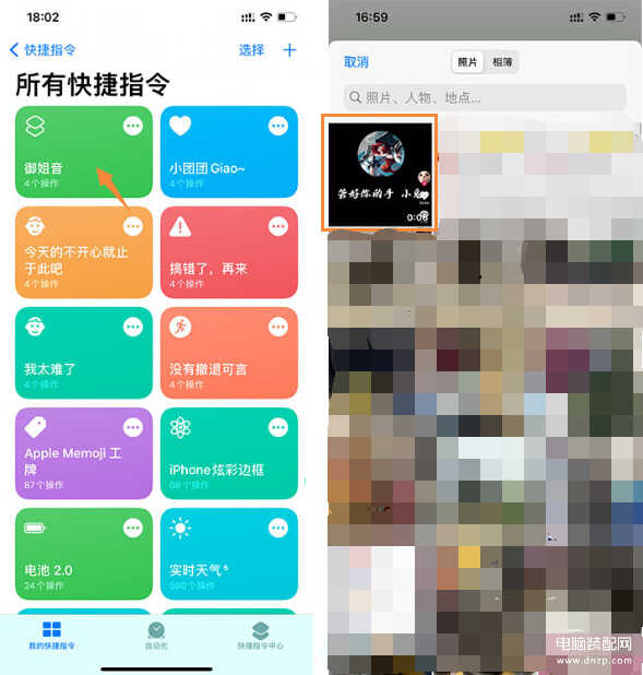 返回主页,点击运行刚刚制作好的「御姐音」快捷指令,当弹出相册视频时,选择刚刚剪裁好的录屏视频片段。