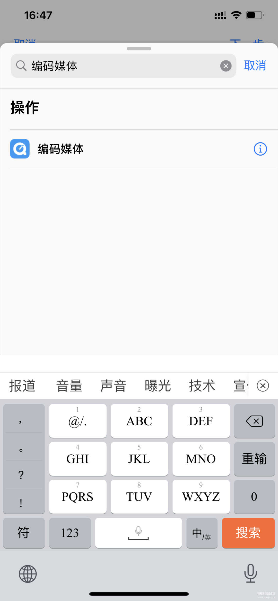再点击「+」按钮,并在搜索框中输入「编码媒体」,然后选中。