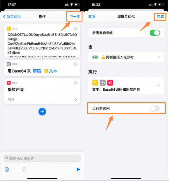 最后将「运行前询问」按钮关闭,再点击「完成」即可。这样就设置完成啦!