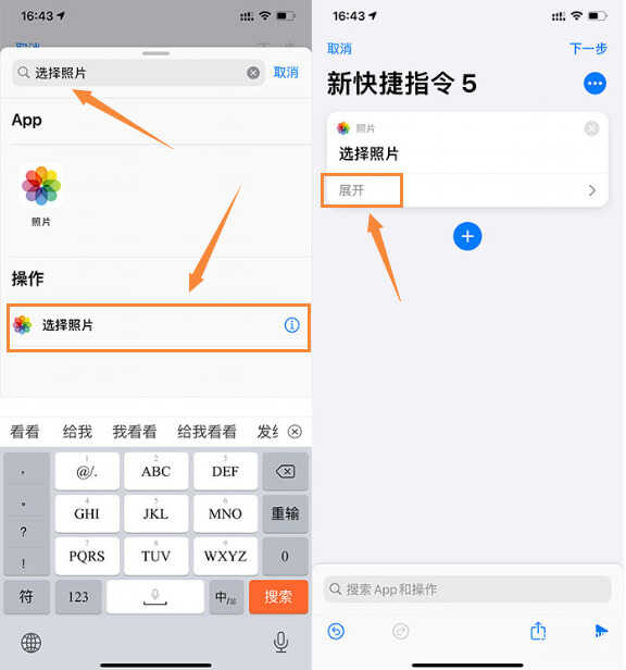 在搜索框输入「选择照片」,并选择「选择照片」,并点击「展开」。