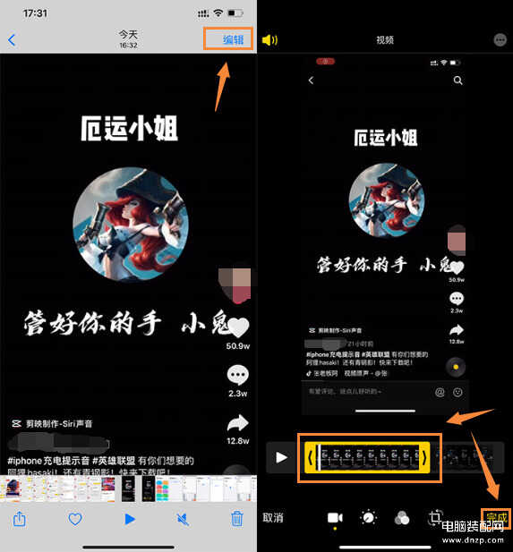 然后打开相册,找到刚刚录好的视频,点击右上角的「编辑」按钮,把需要的音频片段裁剪出来,点击保存即可!