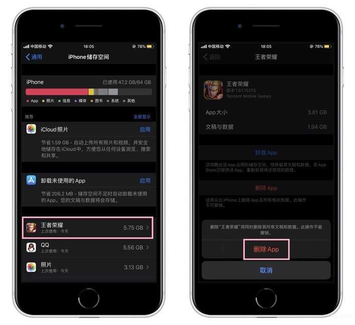 直接卸载APP,残存的数据会留在手机中,我们你可以在设置中,点击【通用】-【iPhone储存空间】,选择需要卸载的APP,点击【删除APP】。
