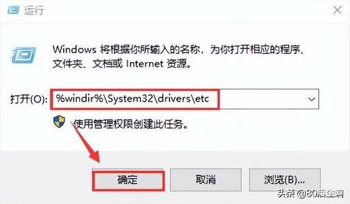 按下组合键Windows + R,调出运行对话框,输入%windir%\System32\drivers\etc并回车,