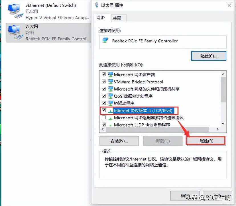 小提示:这里的“以太网”是根据你电脑网卡(Realtek PCIe FE Family Control...)显示的名称来填写的。