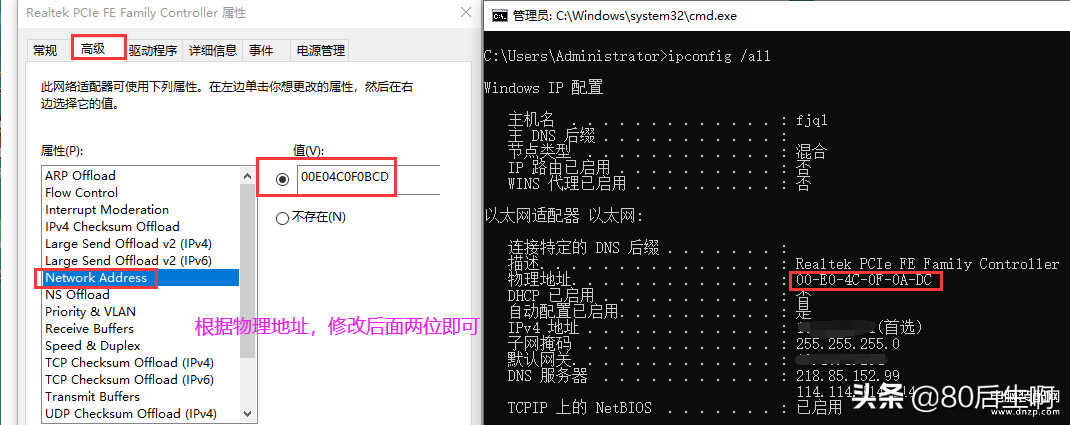 00-E0-4C-0F-0A-DC,我们记下来备用。
