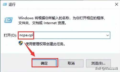 按下组合键Windows + R,调出运行对话框,输入ncpa.cpl并回车,