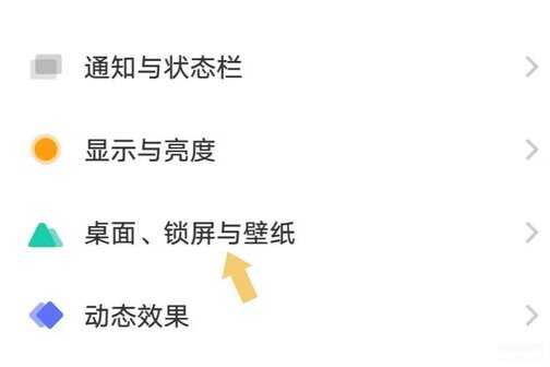 点击进入桌面、锁屏与壁纸,在弹出的界面里找到桌面设置。如下图: