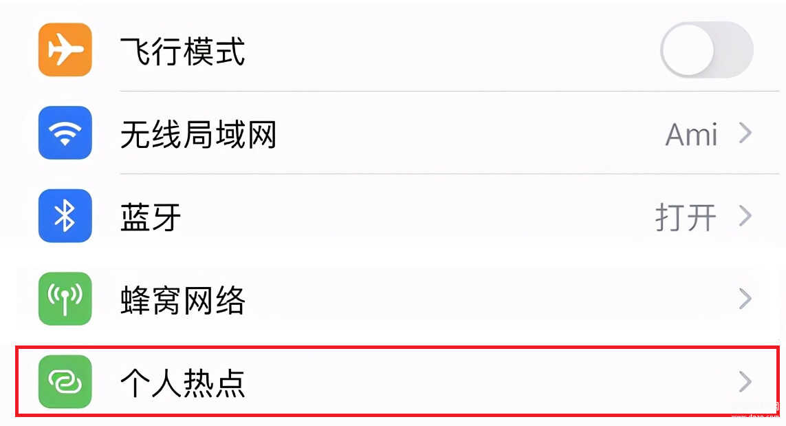2、在“设置”中,选择“个人热点”选项,点击进入。
