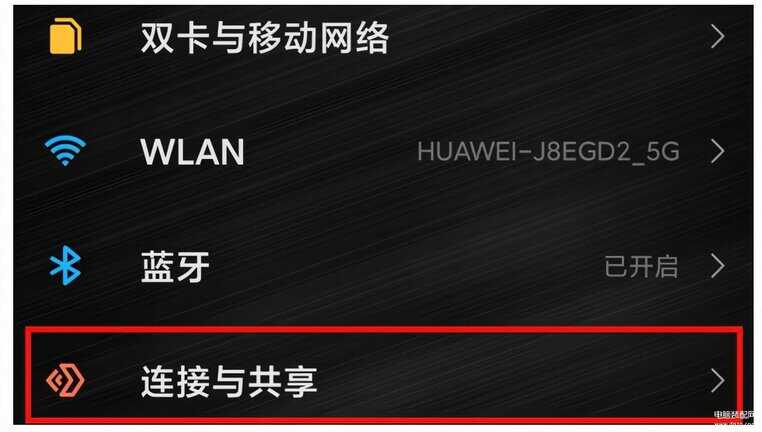 5、在“设置”中,选择“连接与共享”选项,点击进入。