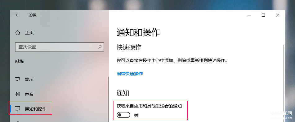 在左侧找到【通知和操作】,把右边的通知按钮关闭了。
