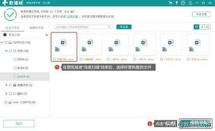 在预览或者“深度扫描”结束后,选择好要恢复的文件,可单选,也可多选。点击“恢复”。文件的保存建议保存在写保护外的其他磁盘,在解除磁盘写保护之后,再拷贝进磁盘里面。