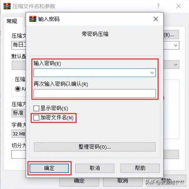 步骤5:之后将密码输入和再次输入密码确认即可。如果想要加密文件名称,就在输入密码的下方选择【加密文件名】;