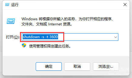 操作方法:按WIN + R快捷键打开“运行”对话框,在对话框中输入命令“shutdown -s -t 3600”,再回车键确定,电脑就会在3600秒后自动关机。