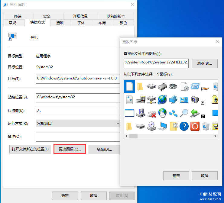 此方法同样适用于将滑动关机命令或shutdown其它命令,也可以根据自己的喜好替换默认的快捷键图标。在生成的快捷键上右击,选择属性,点击更改图标按钮可从弹出的窗口中选择一个喜欢的图标。