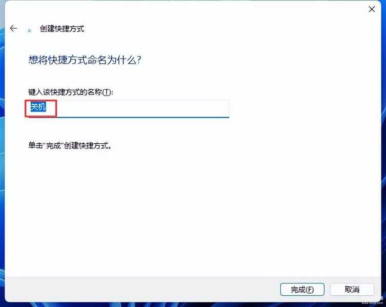 第二步:对其进行命名,可命名“关机”等字样,方便辨识并避免误操作,当需要关机的时候,双击快捷方式,无需键盘操作,即可关机。如下图。