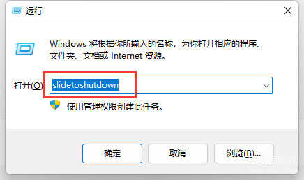 第一步:通过组合键Win+R打开运行 ,然后如下输入" slidetoshutdown ",单击确定,如下图。