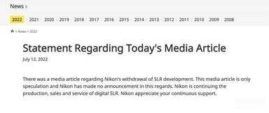针对日媒报道的“尼康停止研发单反相机”一事,尼康日本官网发文回应称:“今天有媒体报道,尼康退出单反开发。本媒体文章仅为猜测,尼康并未就此发表任何声明。尼康将继续生产、销售和支持数码单反相机。 尼康感谢您一直以来的支持。”