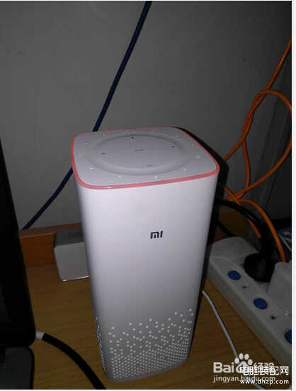 然后将小米AI音箱连上电源,这时小爱同学音箱顶部的环形带灯为橙色。