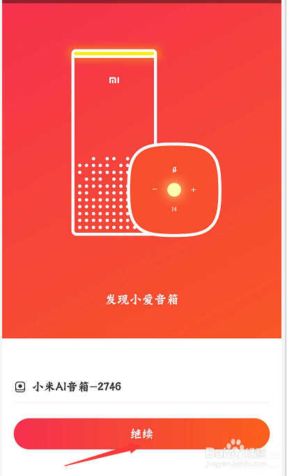 会在手机上显示小米AI箱的型号,然后点击【继续】。如果一直显示说找不到音箱。你可以【长按】音箱顶部的【CN】键来重置小米AI音箱。