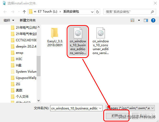 第三步:选择Windows系统安装镜像文件(非GHOST版本系统);