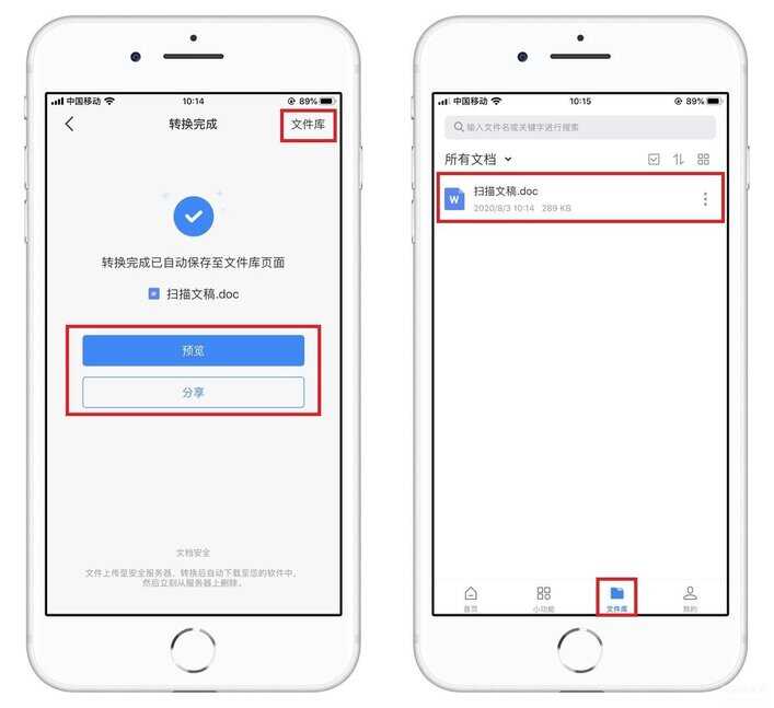 3.等到转换进度达到100%的时候,就说明转换完成了,我们可以点击【预览】查看效果,也可以分享发送出去,转换后的文件,会保存在【文件库】,便于下次查找。