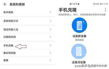点击设置——系统和更新——手机克隆,点击旧设备就会出现扫描,点击新设备-华为就可以出现一个二维码,用旧手机扫码新手机的二维码,手机就会自动进行数据备份了,这个操作非常方便。