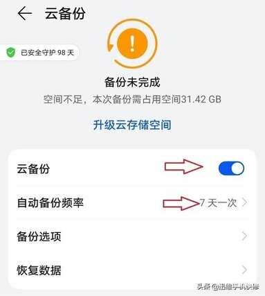 2、同时可以选择自动备份的频率,1天、3天、5天或7天一次。