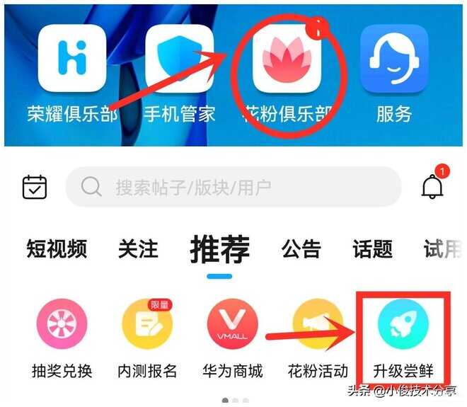 除了使用手机自带的软件更新系统之外,其实利用花粉俱乐部中的升级尝鲜也能快速体验最新系统!