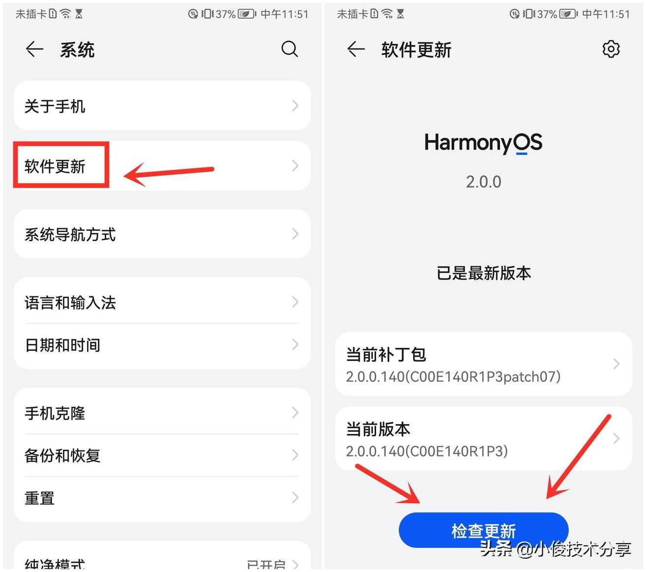 接下来点击【立即申请】,此时也会进入到【检查更新】页面,通过这种方法也可以帮我们自动升级更新鸿蒙系统!