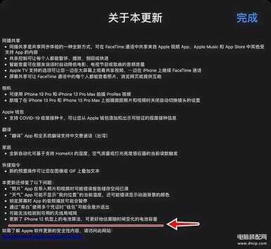 据了解,iOS15.1正式版更新了 iPhone12机型上的电池算法,可更好估算随时间变化的电池容量。